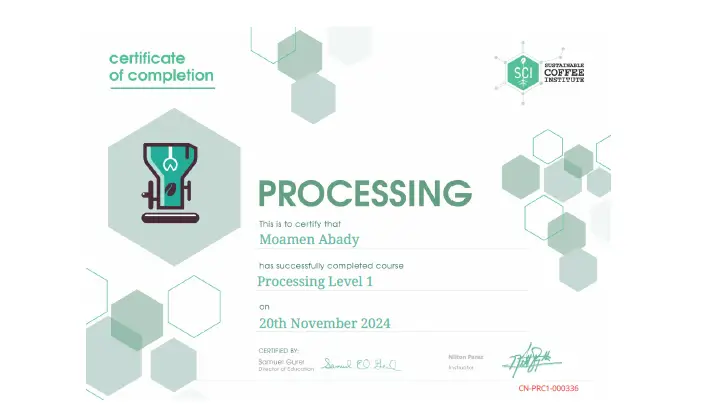 اليوم الأخير و المستوي الاحترافي لدورة معالجة البُن مبكراً حضرت المجموعة وبدأنا متحمسين في الدراسة النظرية للمستوي الاحترافي لدورة المعالجة